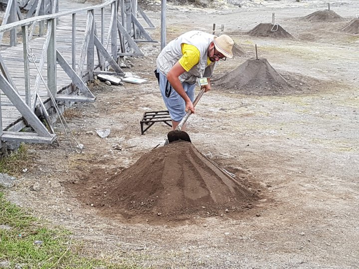 signalez un problèmeC'est aux Açores, sur São Miguel, je dirais (peut-être bien même précisément à Furnas). Ce monsieur enfouit dans la chaude terre volcanique une marmite de cozido qui va mijoter là doucement pendant un certain nombre d'heures. Est-ce-que c'est ça ??? Super l'idée d'une photo énigme qu'il faut légender en commentaire, j'adore Vmpbou !!! j'adore