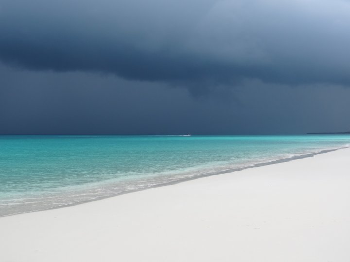 Plage de sable blanc à Ouvéa en Nouvelle-Calédonie juste avant un bel orage.
