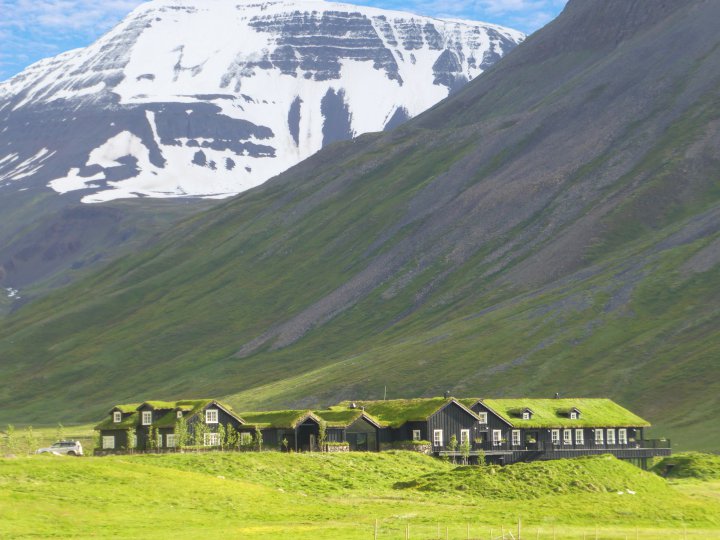 signalez un problèmeVu et fais les mèmes photos en NORVÈGE il y a 4 années , avec ces habitations aux toits en couverture végétale. On peut dire que les prés sont sur deux surfaces...