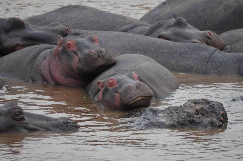 Ils sont heureux et ils ont l'air placide,mais méfiez vous ils sont pas commode ces gros potames.Bonne proposition.
