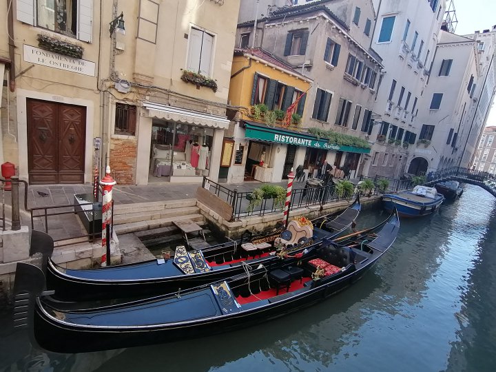 Venise aux petites heures du matin, un restaurant en bordure de l'eau.