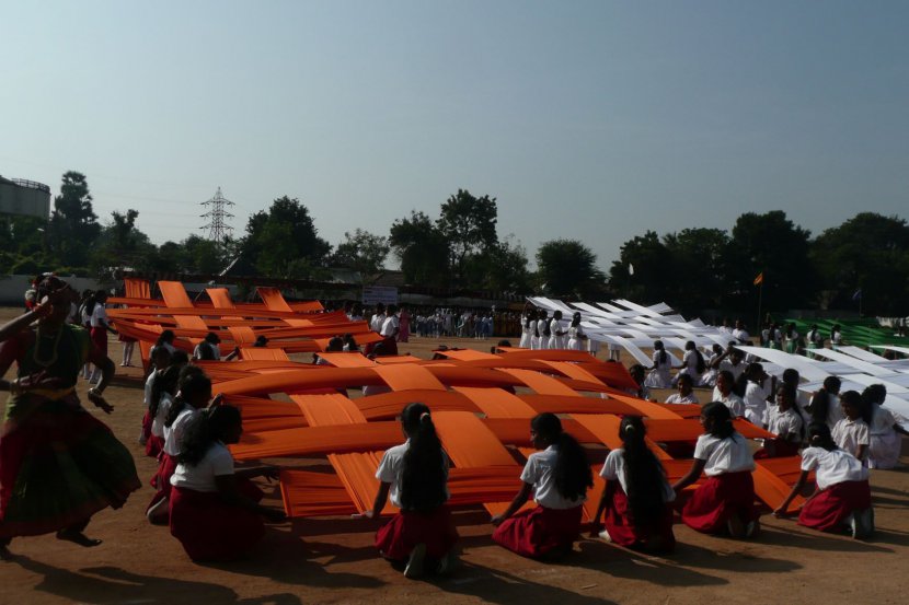 Célébration du jour de la République qui est une des 3 fêtes nationales en Inde (ici à Tanjore) le 26 janvier. Les autres fetes nationales sont le jour de l'independance le 15 Août et le jour anniversaire de Gandhi le 2 octobre