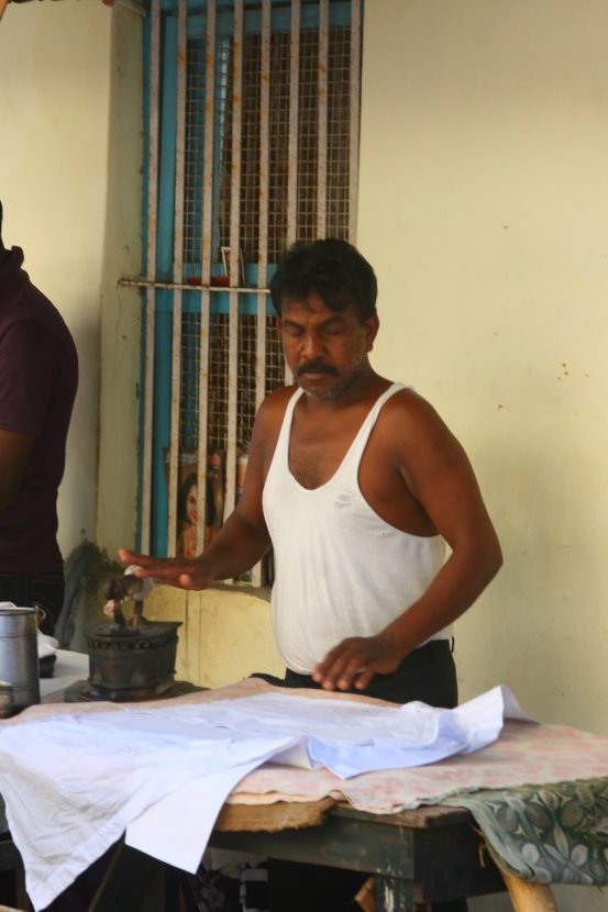 En Inde, nombreux sont les métiers de rues... Ici un indien en train de repasser une chemise dans son étal ouvert sur la rue. J'ai toujours été frappée par les tenues immaculées des indiens malgré leur pauvreté et leurs conditions de vies
